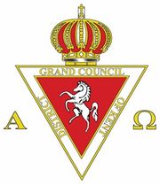 Regalia consists of a triangular jewel, worn when first admitted (or “chosen”) and a triangular apron worn once you have completed the first four degrees.